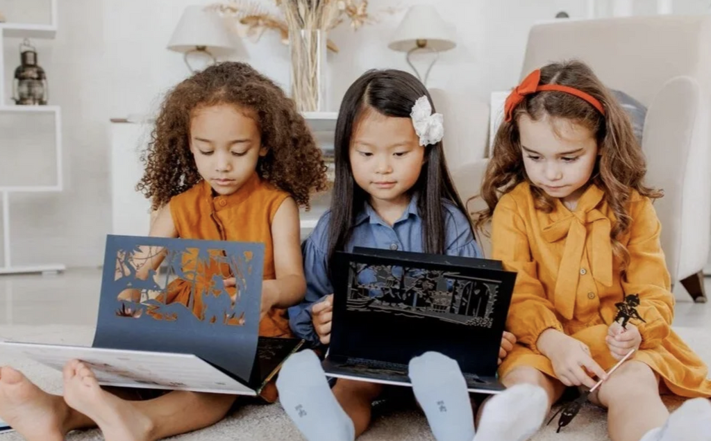 Уникальная, запатентованная конструкция, которая при открытии книги приводит страницы в вертикальное положение — идеально для теневого представления.