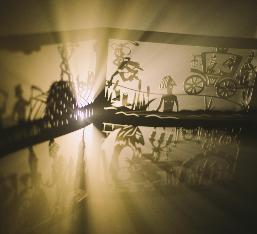 Мы разработали специальный фонарик SrotyLighter. От обычного фонарика его отличает теплый свет, который успокаивает малыша перед сном и способствует его засыпанию, а так же специальный отражатель, который делает тени контрастными и четкими, даже когда вы делаете большие тени во всю стену или потолок.