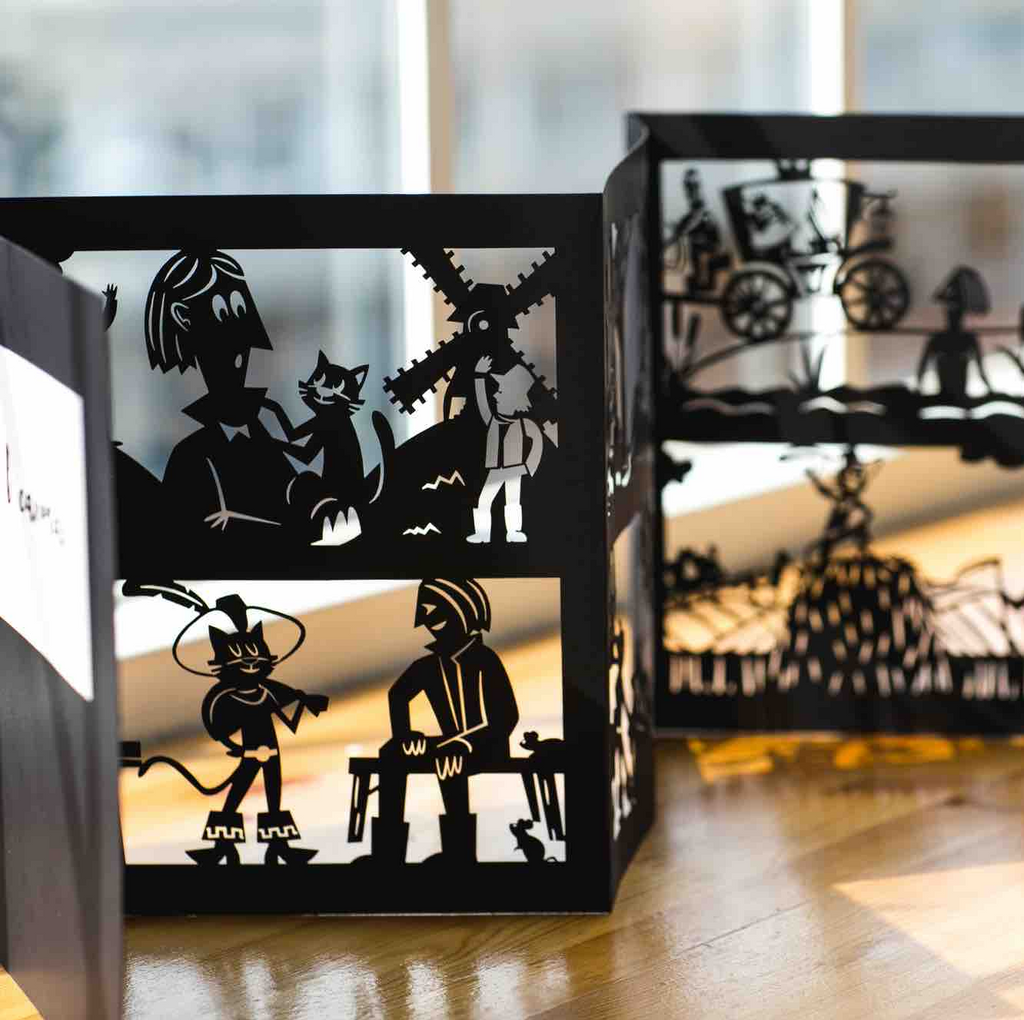 Уникальная, запатентованная конструкция, которая при открытии книги приводит страницы в вертикальное положение — идеально для теневого представления.