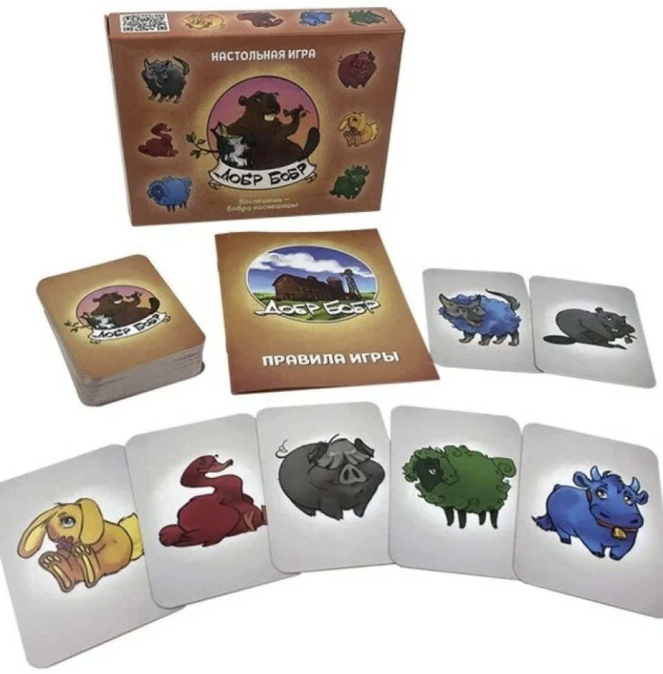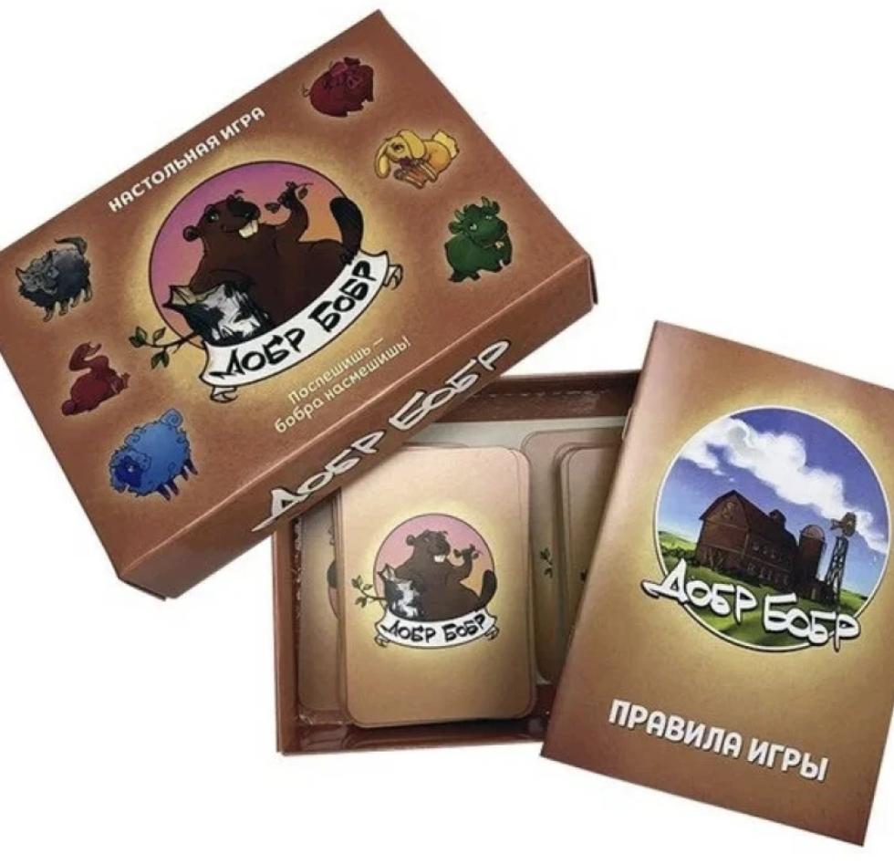 Настольная игра "Добр Бобр" - это быстрая карточная игра, в которой вы будете каждую минуту принимать молниеносные решения. Игроки выкладывают на стол карты с изображением разноцветных животных. Сыграв карту, вы должны как можно быстрее объявить, какого цвета или каких животных на столе больше всего. Например: «гусь» или «зелёный». Если вы ошиблись, заберите себе все карты со стола и начните новый раунд.