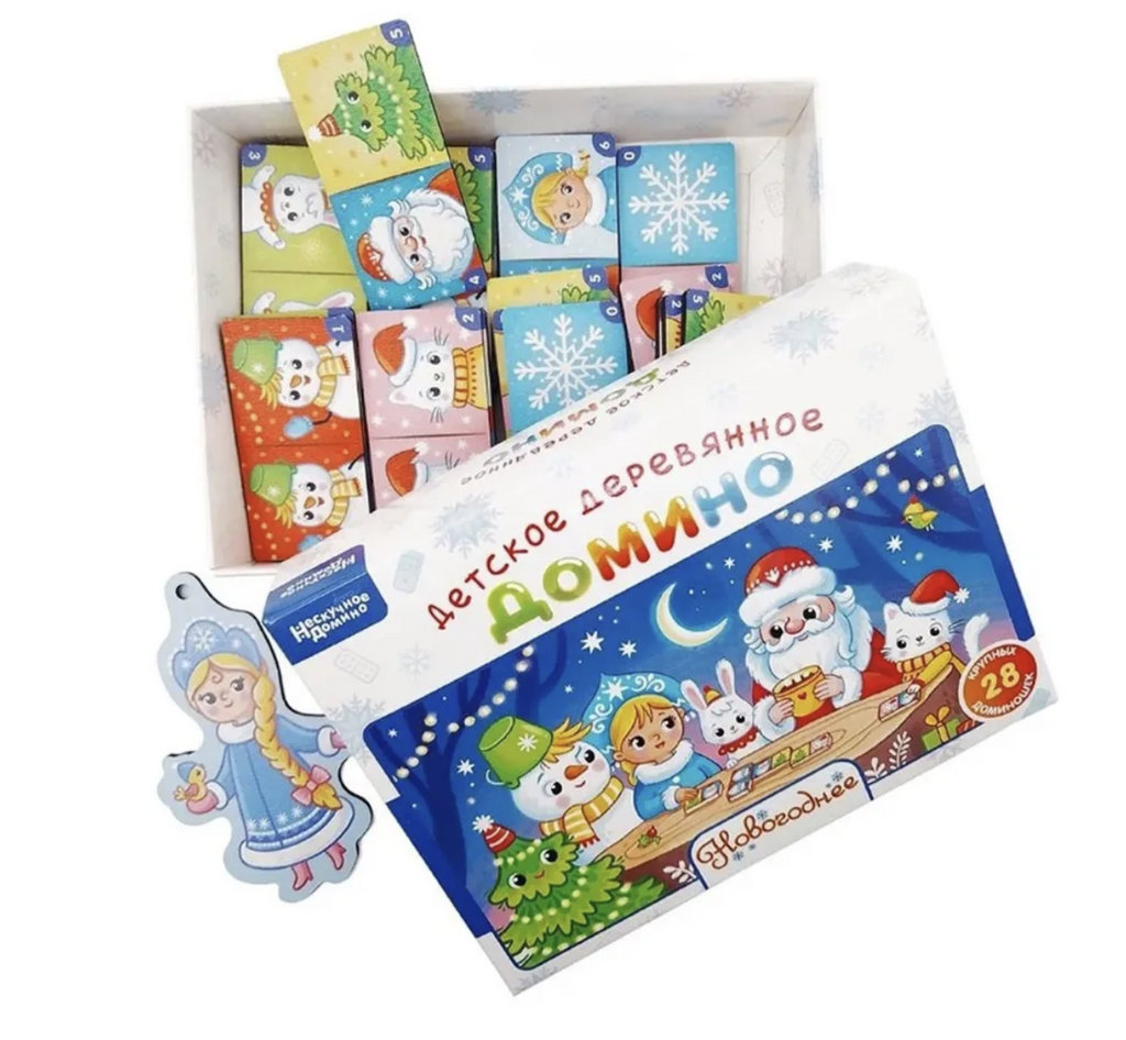 Набор включает яркие фишки для игры, разделённые на 2 части. На каждой из частей есть картинка с новогодним персонажем, такими как, Дед Мороз, Снегурочка, снеговик и других.