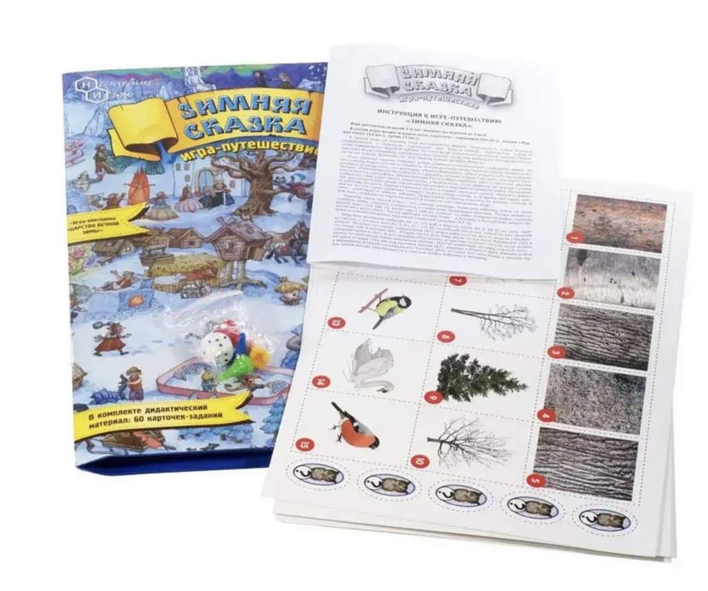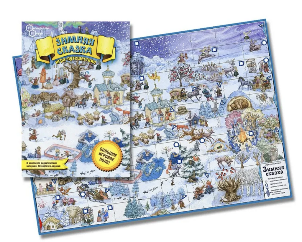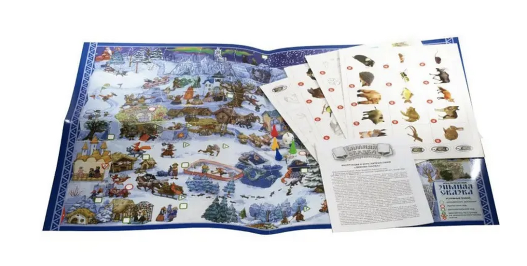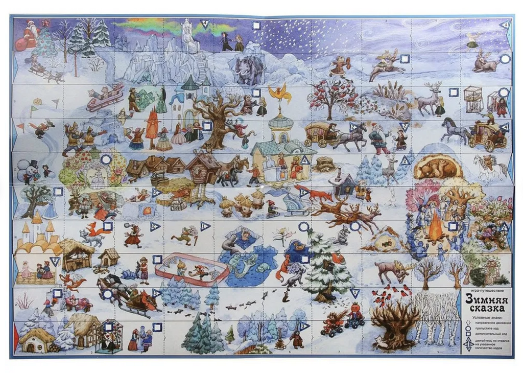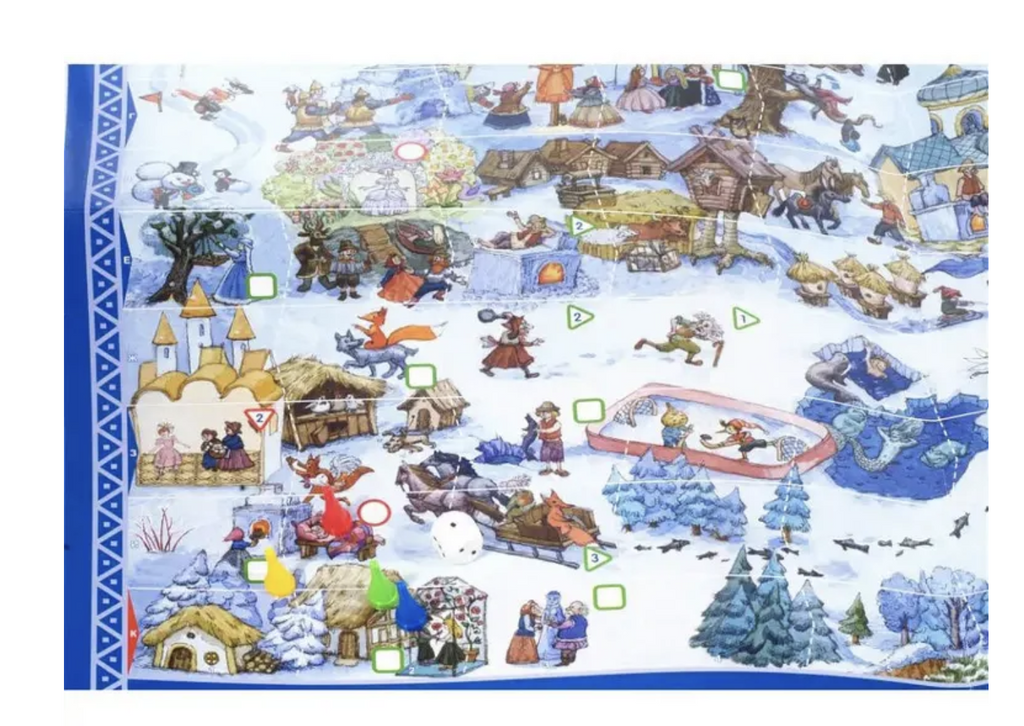 Игра «Зимняя сказка» поможет детям провести познавательно свободное время. Но без помощи взрослого им не обойтись. В игре использованы сюжеты сказок «Снежная королева», «Снегурочка», «12 месяцев», «Мороз Иванович», «Лиса и волк», «По щучьему веленью», «Приключения Незнайки и его друзей», «Сказка о царе Салтане», «Сказка о Золотом петушке», «Колобок», «Приключения барона Мюнхгаузена», «Кот в сапогах», «Конек-горбунок», «Три поросенка», «Буратино», «Чипполино». Если ребенок не знаком с сюжетом, расскажите ему сюжет сказки или предложите ему вместе почитать книгу. Предложите ребенку отыскать героев «зимних» сказок и героев «летних» сказок. Обратите внимание на то, что герои «зимних» следуют сюжету своей сказки, в то время как герои «летних» - участвуют в зимних забавах. Предложите ребенку ответить на вопрос, почему та или иная ситуация на карте вызывает ускорение или замедление хода.