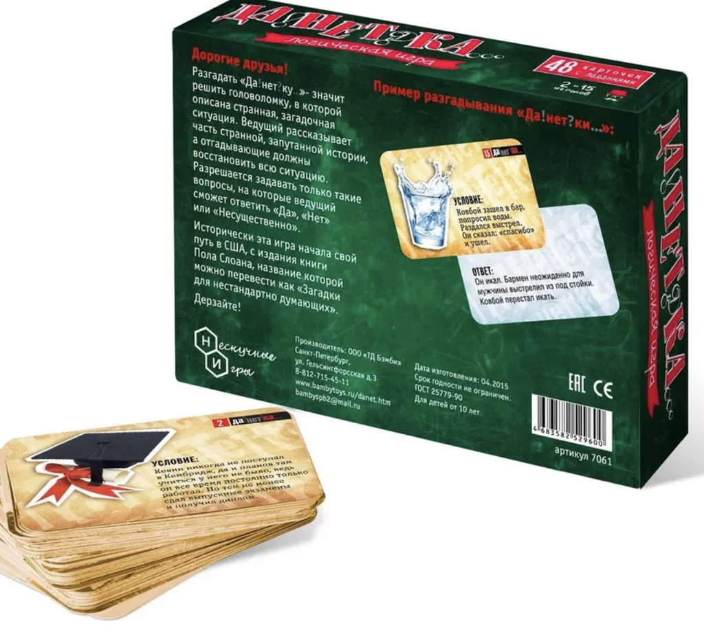Настольная игра - "ДаНетка". «ДаНетка» – это весёлая детективная игра для большой компании. Разгадать "ДаНетку" - значит решить головоломку.