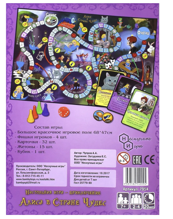 Настольная игра Алиса в Стране чудес станет замечательным подарком для детей от 7 лет. Играйте всей семьей или с друзьями!