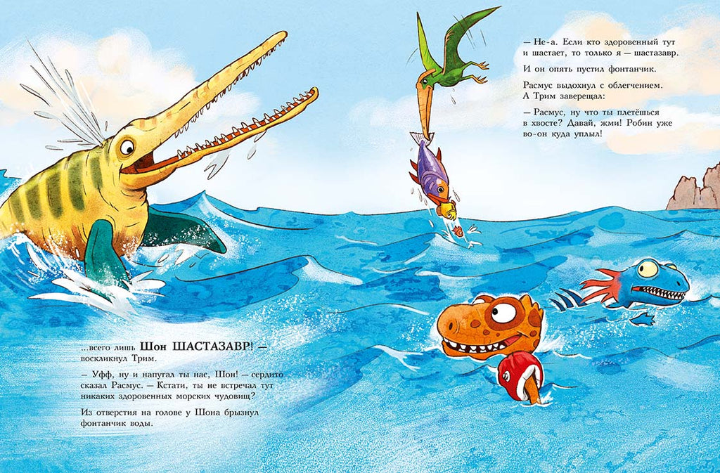 Серию книг о приключениях друзей-динозавриков сочинили и нарисовали писатель Ларс Мэле и художник Ларс Рудебьер. Они создали целую страну Динозаврию, где на каждой странице ребенка ждет что-то смешное и неожиданное. В книге много диалогов, поэтому она отлично подойдет для чтения вслух или разыгрывания по ролям с детьми от 4-х лет.