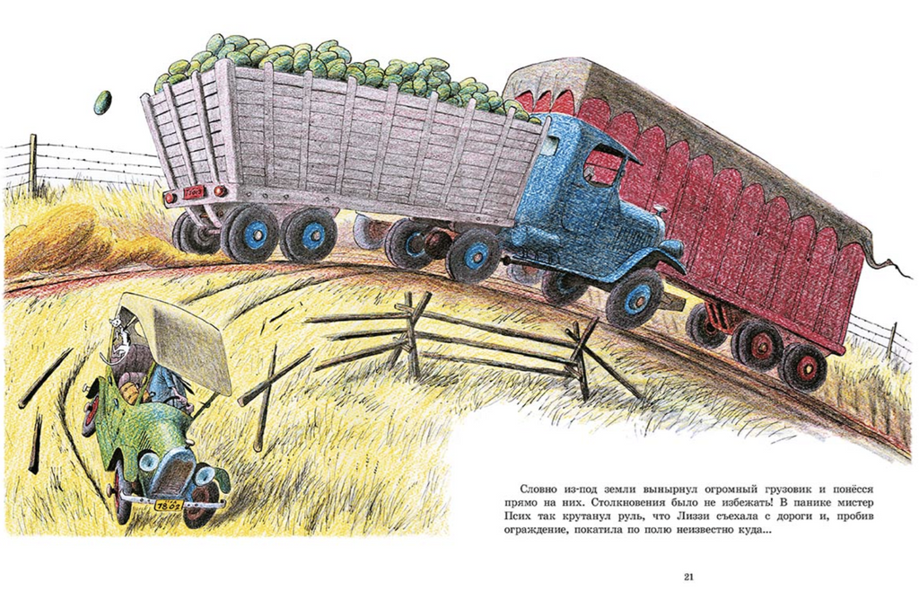 В сборник известного американского детского писателя, сценариста и художника-мультипликатора студии Уолта Диснея Билла Пита вошли две сказочные истории: «Старушка Лиззи и Мяо-Мурси» и «История, от которой волосы встают дыбом».