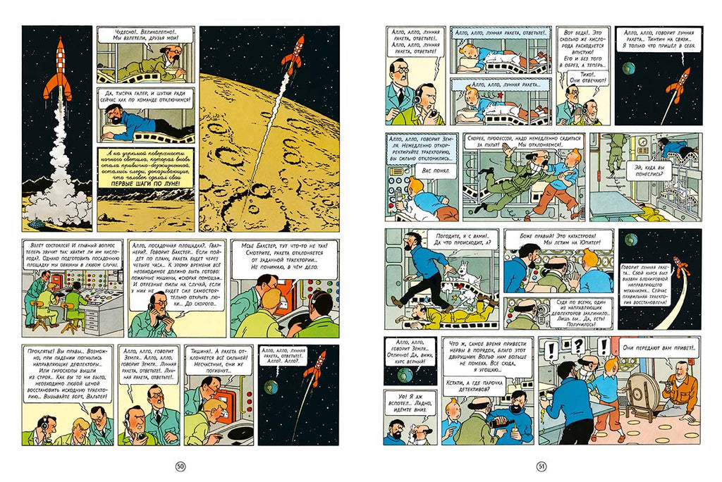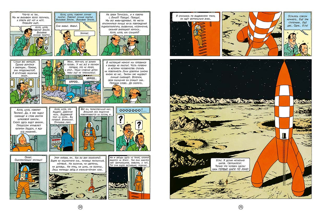 В Центре атомных исследований в сильдавском Сброе состоялся запуск лунной ракеты, на борту которой находятся Тинтин с Милу, капитан Хаддок, профессор Турнесоль и инженер Вольф. С тревогой в ЦУПе ждут, когда первые покорители космоса очнутся после стартовых перегрузок, однако все попытки выйти с ними на связь ни к чему не приводят: ответного сигнала все нет. А где-то далеко в позывные Земли вслушиваются неизвестные: для них лунная миссия представляет не только научный интерес… Так начинается вторая часть лунного триллера, который до последних страниц держит читателя в напряжении. Бесконечная череда невероятных событий ставит под вопрос саму возможность благополучного возвращения героев на Землю.«Приключения Тинтина» — известная во всем мире серия комиксов бельгийского художника Жоржа Реми, работавшего под псевдонимом Эрже. Рискуя жизнью, отважный репортер Тинтин расследует загадочные происшествия, но из всех передряг выходит победителем. И что бы ни случилось рядом всегда его верный друг —белоснежный фокстерьер Милу.
