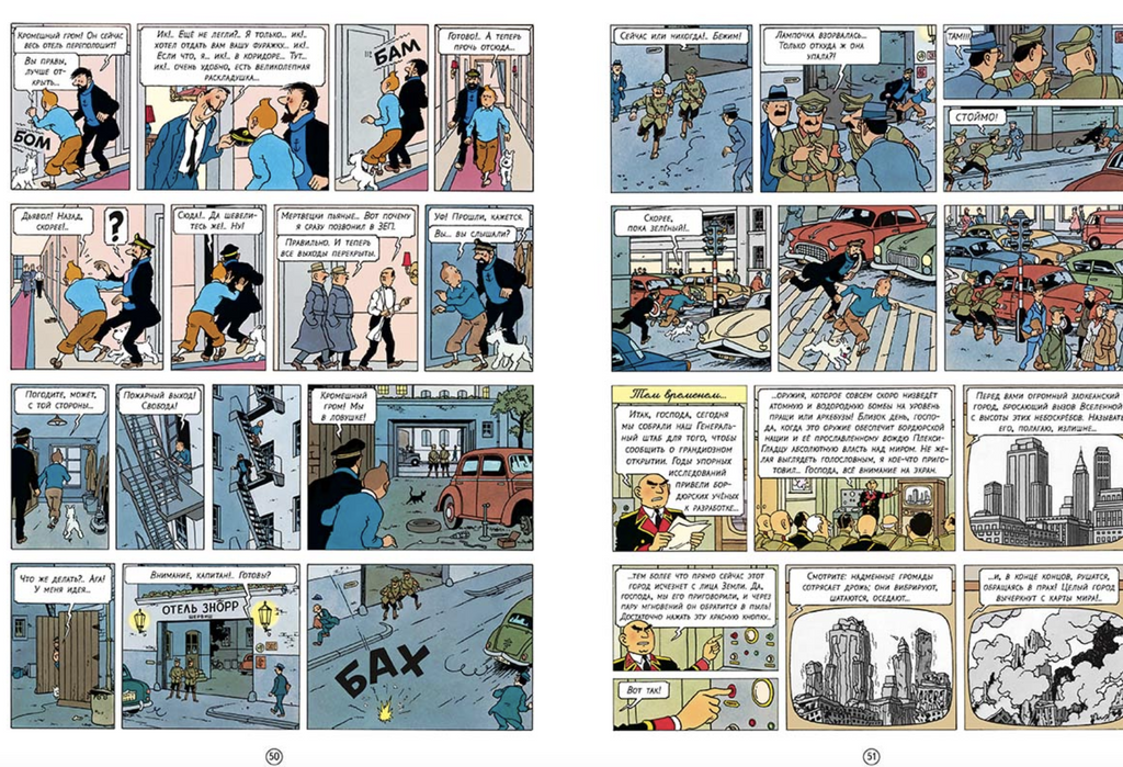 Восемнадцатый том «Приключений Тинтина», вышедший в 1956 году, многие критики считают самым кинематографичным благодаря напряженному шпионскому сюжету. Одновременно это и самый смешной альбом серии, он буквально пестрит визуальными и текстовыми гэгами.
