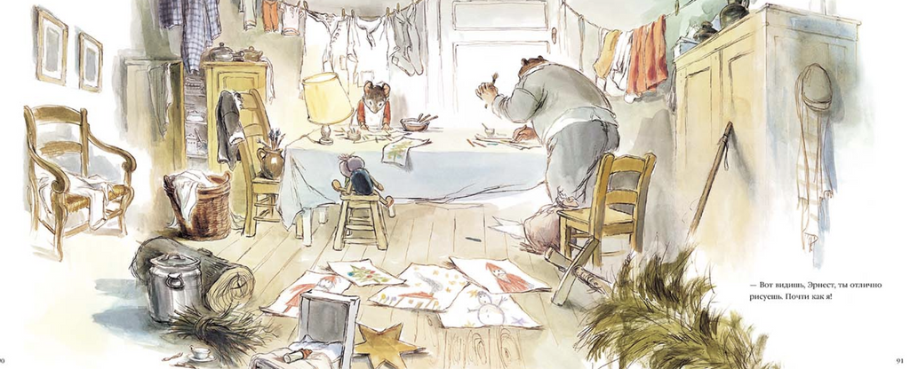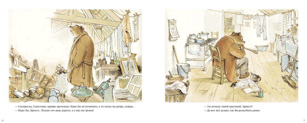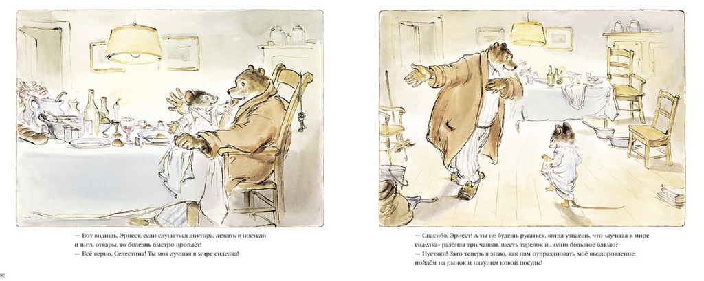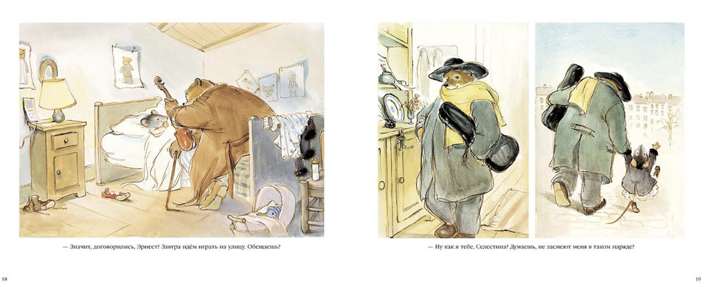 Cерия книжек-картинок о приключениях добродушного медведя по имени Эрнест и его «приёмной дочери», маленькой мышки Селестины принесла бельгийской художнице Габриэль Венсан (1928–2000) мировую известность.Нежные акварельные рисунки Венсан настолько выразительны, что почти не требуют слов. При помощи лёгких линий и едва заметных штрихов ей удаётся передать малейшие оттенки эмоций, самые тонкие чувства героев – обиду, растерянность, смущение, внезапный восторг и, конечно, любовь во всех её проявлениях. Любовь, которая больше, чем жизнь.