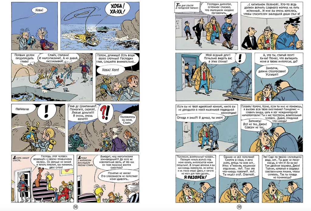 Важнейшее событие в судьбе Спиру — встреча с Андре Франкеном (1924–1997). Талантливый художник работал над серией почти четверть века и вывел её на уровень шедевра 9-го искусства. На русском языке впервые выходят восемь из числа лучших альбомов Франкена, среди которых «Спиру и наследники», «Похитители марсупилами», «Рог носорога», «Дурная голова», «Гнездо марсупилами».