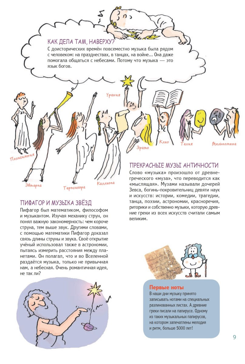Вдохновлённый детскими вопросами о музыке и её природе, Николя Лафит делает полный обзор темы музыки — её истории от древности до наших дней, описание различных музыкальных стилей, жанров и направлений, классических и не очень музыкальных инструментов, видов оркестров и, конечно, всевозможных композиторов и певцов со всех уголков нашей планеты.