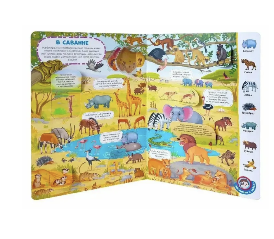 Виммельбух - это большая красочная книга, на каждой странице которой происходит множество событий и умещается множестов героев. А виммельбух с окошками "Животные" от торговой марки Malamalama - это увлекательные путешествия в разные уголки Земли, встреча с уникальными животными и растениями, шумные реки и высокие горы, густые леса и зеленые поля, а также десятки сюрпризов в окошках. Отправляйтесь в кругосветное путешествие по страницам виммельбуха "Животные"!