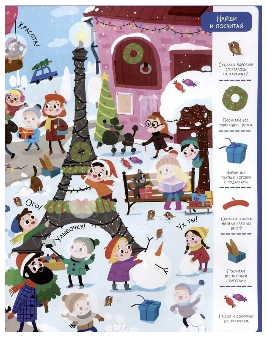 Виммельбух с наклейками «Новый год разных стран» — это увлекательная брошюра для маленьких исследователей, которые любят рассматривать подробные иллюстрации. Каждый разворот наполнен увлекательными сценами, которые побуждают искать и находить новые детали. Брошюра содержит иллюстрации со сценами празднования Нового года и Рождества в разных странах, задания «Найди и посчитай» и игру с наклейками — их здесь более 100! Виммельбух в игровой форме развивает внимание, навыки счёта и фантазию. А ещё это прекрасный способ провести время всей семьёй, обсуждая картинки и придумывая истории.