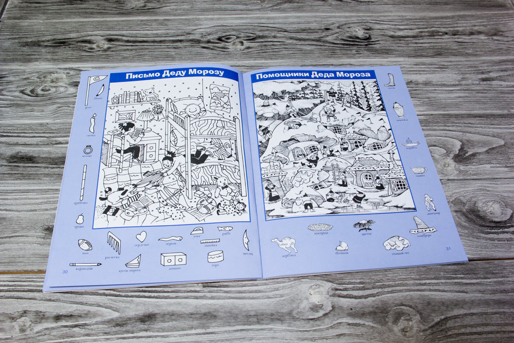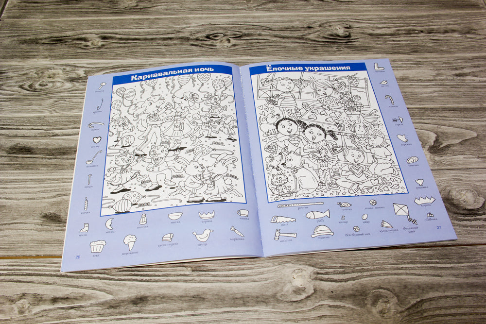 Мировой бестселлер развлекательных книг для всей семьи, серия "1000 картинок" создана специально для весёлых и внимательных детей и их взрослых. С книгами серии вам обеспечены множество часов дружного семейного досуга — устройте конкурс "Кто первый найдёт" на скорость! Сначала будет просто — на первых страницах картинок для поиска совсем немного, но чем дальше в лес, тем круче прятки! На каждой странице скрываются от 10 до 40 спрятанных картинок. И когда вы найдёте все предметы — книга превратится в большую раскраску!
