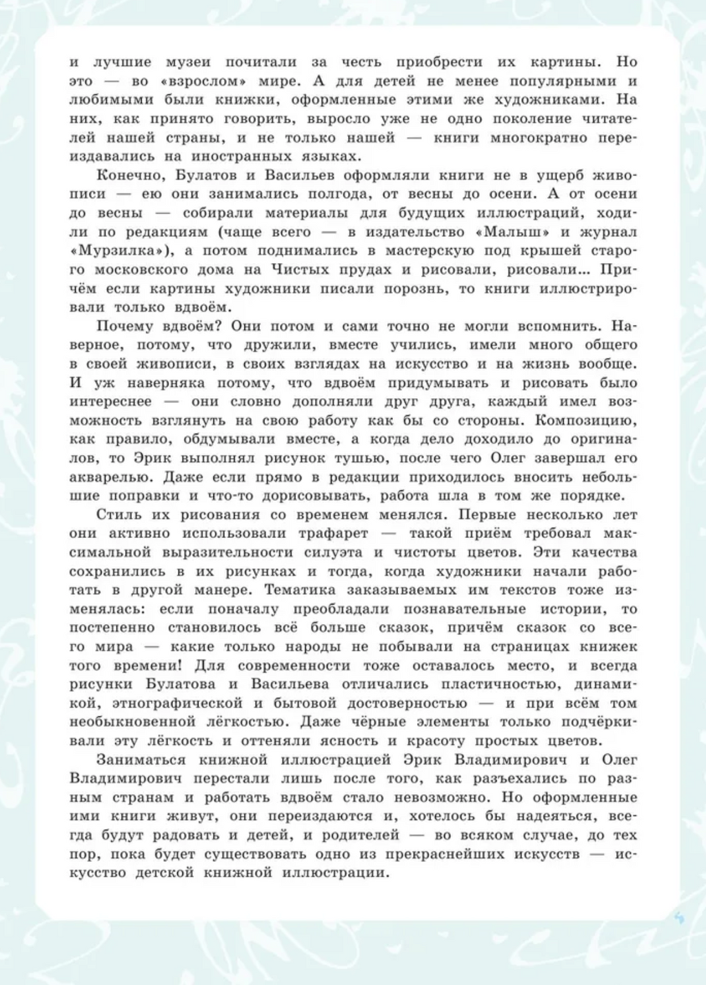 В сборник вошли самые лучшие стихи, сказки и рассказы писателей и поэтов XX века, а также сказки разных народов в рисунках Эрика Булатова и Олега Васильева — выдающихся художников, которые создали непревзойдённый творческий тандем.За годы совместной работы художники проиллюстрировали более ста книг для детей, меняя темы и стиль рисования. Э. Булатов и О. Васильев оформляли книги А. Барто и В. Берестова, В. Катаева и Г. Цыферова, Э. Мошковской и М. Бородицкой, Бориса Заходера и Е. Пермяка.