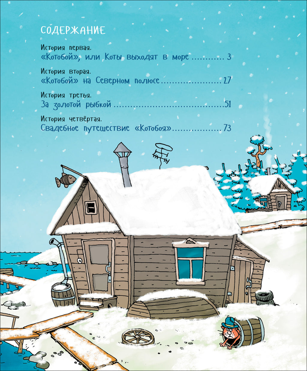 Где-то на севере есть удивительная деревушка Котьма. Удивительна она тем, что живут в ней одни только коты! И неплохо справляются с самостоятельной жизнью. Однажды из старой лодки они сделали настоящую парусную яхту и отправились в плавание, да не за какой-нибудь мелкой рыбёшкой, а за целым китом! Сочинил весёлые истории о путешествии яхты «Котобой» замечательный детский писатель Андрей Усачёв, а яркие смешные иллюстрации к ним нарисовал известный художник дядя Коля Воронцов.