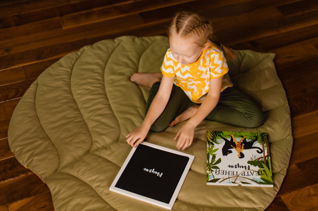 В коробке: книжка-гармошка с резными иллюстрациями, адаптированный текст сказки и простая инструкция по использованию.