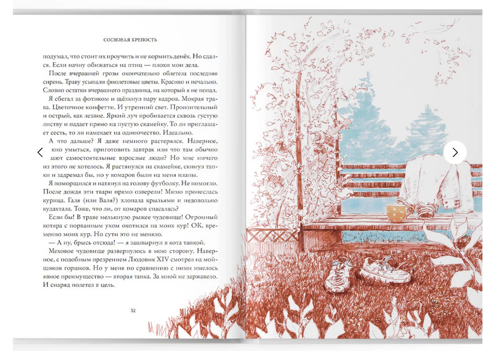 Когда тебе четырнадцать, то дикая жизнь на даче — это настоящее приключение! Герой этой повести впервые остаётся в полном одиночестве, присматривает за хозяйством, пока вся семья жарится в душном летнем городе. Но у него с собой чистый скетчбук, который можно наполнить рисунками, и старый дедовский фотоаппарат на тридцать шесть кадров. Идиллию дачного одиночества слегка нарушает приезд лучшего друга, но с ним даже интереснее гонять на великах по посёлку и купаться в озере. В одной из таких поездок друзья обустраивают собственное секретное логово, Сосновую крепость.