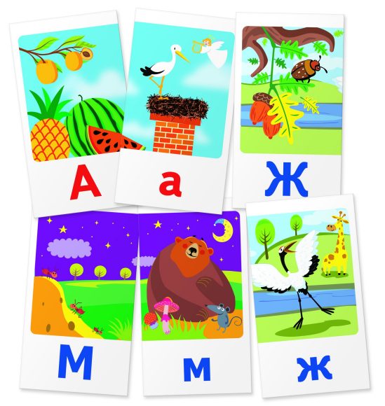 Представленный на карточках материал ориентирован на визуальное восприятие ребёнком букв и предметов, названия которых содержат эти буквы, что способствует развитию образного мышления и облегчает усвоение материала.
