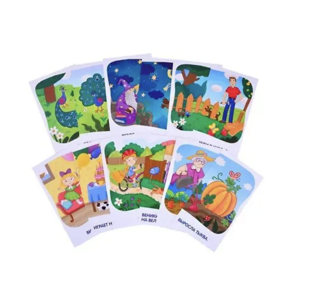 Двусторонние карточки с играми разных уровней сложности + инструкция.