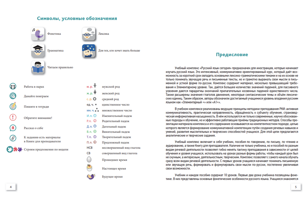 Учебник является компонентом учебного комплекса по русскому языку как иностранному «Русский язык сегодня. Элементарный уровень+ (А1+)» и предназначен для взрослых учащихся.