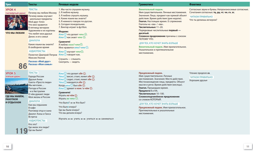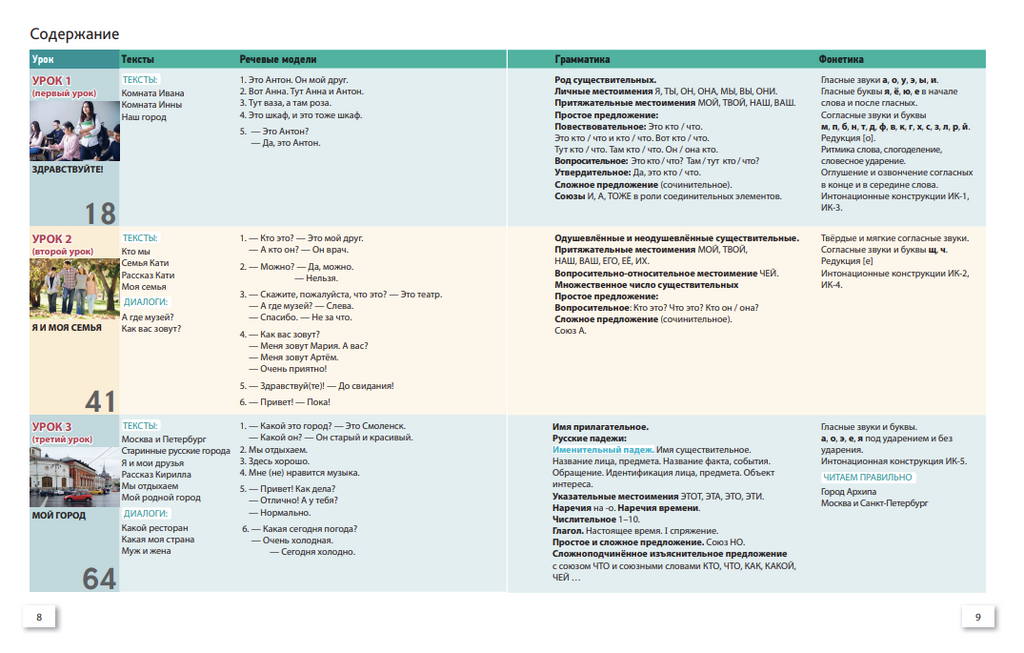 Это интенсивный, коммуникативно ориентированный курс, который даёт возможность за короткий срок овладеть основными лексико-грамматическими темами и на их основе не только понимать звучащую речь и письменные тексты, но и грамотно выражать свои мысли в письменной и устной формах по-русски. Комплекс содержит материал, несколько превышающий требования к Элементарному уровню. Так, даётся большее количество значений падежей, для пассивного усвоения даются парадигмы окончаний прилагательных косвенных падежей единственного числа. Также расширены значения глаголов движения, некоторые синтаксические темы и объём лексических единиц. Таким образом, авторы обозначили достигаемый учащимися уровень владения русским языком как «Элементарный+» (А1+).