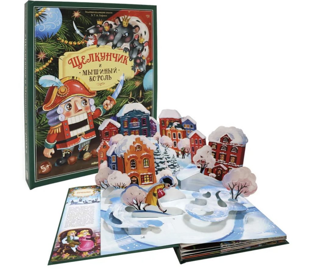 Щелкунчик и Мышиный король. Гофман Э.Т.А. Золотая коллекция сказок «Щелкунчик и Мышиный король» Э. Т. А. Гофмана – всеми любимая рождественская сказка, которая уже многие годы не оставляет читателей равнодушными. Добрая история о настоящей любви, искренности, дружбе и преданности, подлинной победе добра над злом станет настольной новогодней книгой вашего ребёнка. Серия «Золотая коллекция сказок» – это портал в яркий мир любимых персонажей, которые оживают на страницах благодаря объемным pop-up конструкциям. Внутри не только иллюстрации, но и полный текст сказки. Подарите себе и своему малышу чудесную новогоднюю историю!
