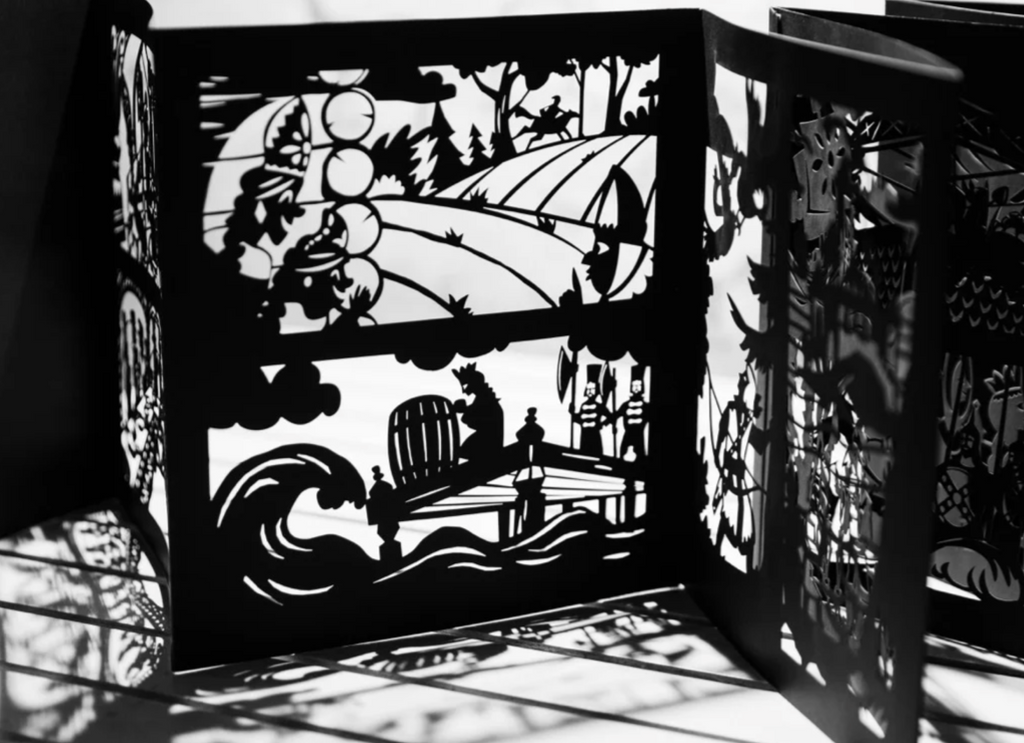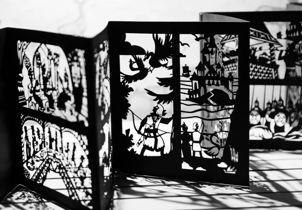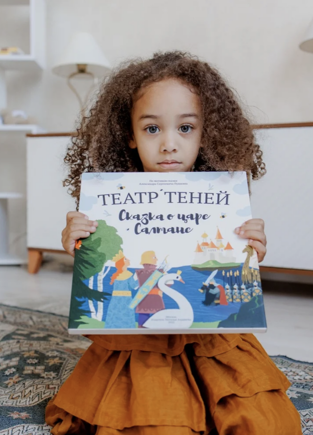 В коробке: книжка-гармошка с резными иллюстрациями, адаптированный текст сказки и простая инструкция по использованию.