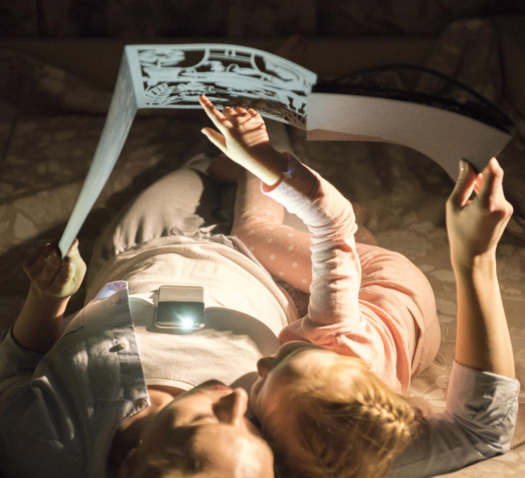 В коробке: книжка-гармошка с резными иллюстрациями, адаптированный текст сказки и простая инструкция по использованию.