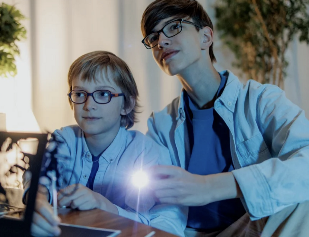 Мы разработали специальный фонарик SrotyLighter. От обычного фонарика его отличает теплый свет, который успокаивает малыша перед сном и способствует его засыпанию, а так же специальный отражатель, который делает тени контрастными и четкими, даже когда вы делаете большие тени во всю стену или потолок.